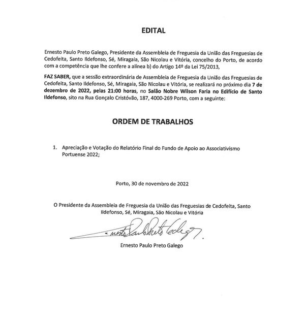 30 Novembro 2022ASSEMBLEIA DE FREGUESIA EXTRAORDINÁRIA