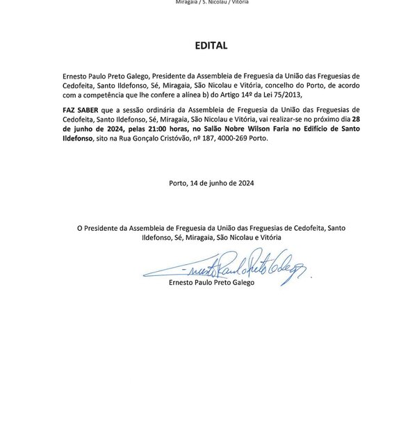 19 Abril 2024ASSEMBLEIA DE FREGUESIA ORDINÁRIA - 29 DE ABRIL
