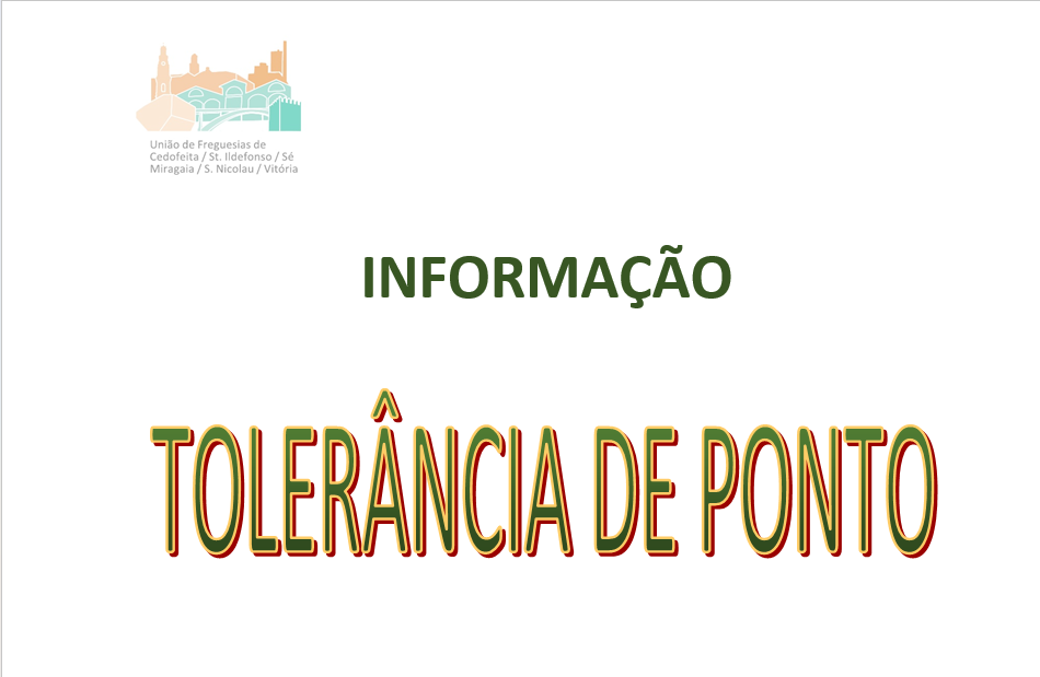 Em virtude da terça-feira de Carnaval não constar da lista de feriados obrigatórios estipulados por Lei, mas atendendo ao peso da tradição relativamente às festividades deste período, foi determinado pelo Executivo da Junta de Freguesia da União das Freguesias de Cedofeita, St Ildefonso, Sé, Miragaia, S. Nicolau e Vitória, conceder tolerância de ponto no dia 13 de fevereiro (terça-feira) e, por esse motivo, os Serviços da União de Freguesias encontram-se encerrados.