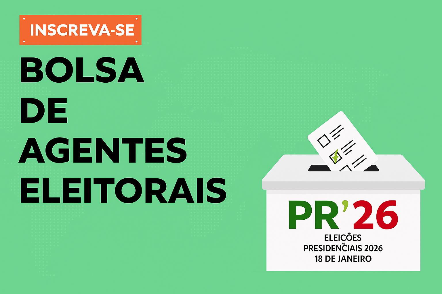 Encontram-se abertas as inscrições para recrutamento de Agentes Eleitorais (membros de mesa), para as Eleições Presidênciais 2026, que decorrem a 18 de janeiro de 2026.