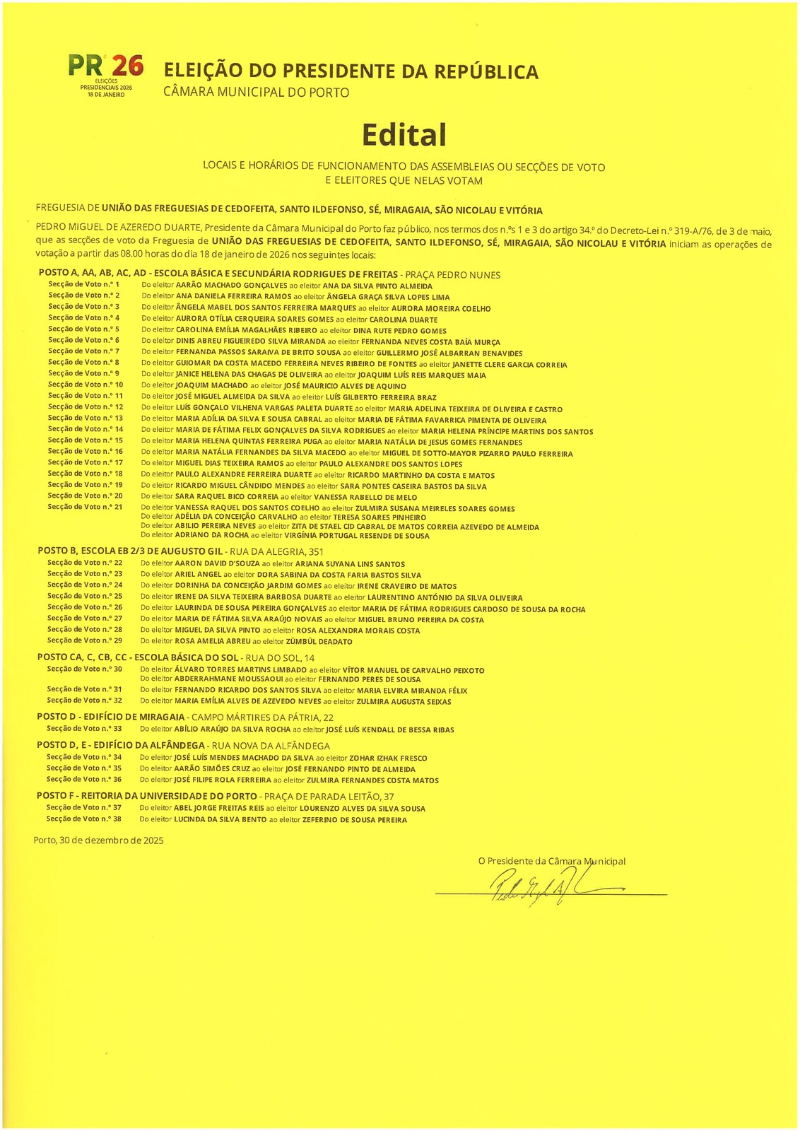 No próximo dia 18 de janeiro decorrem as Eleições Presidenciais.