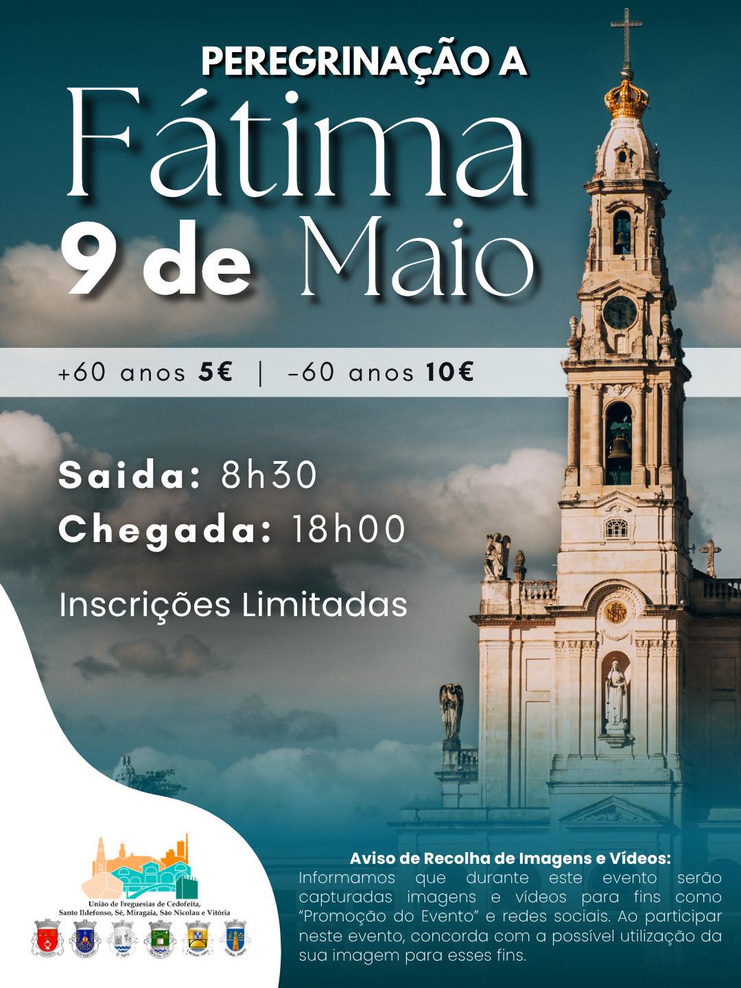 É com muito carinho que convidamos todos a juntarem-se a nós numa peregrinação ao Santuário de Fátima. Vamos acender uma velinha a Nossa Senhora de Fátima e pedir pela paz, para que a guerra chegue ao fim.